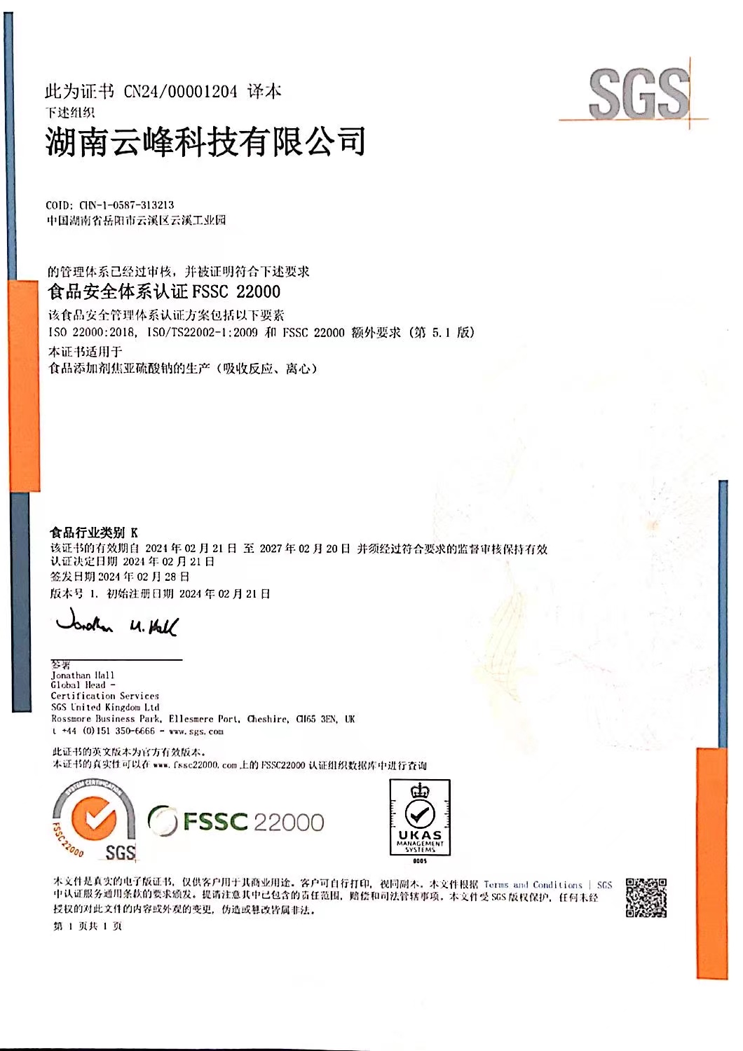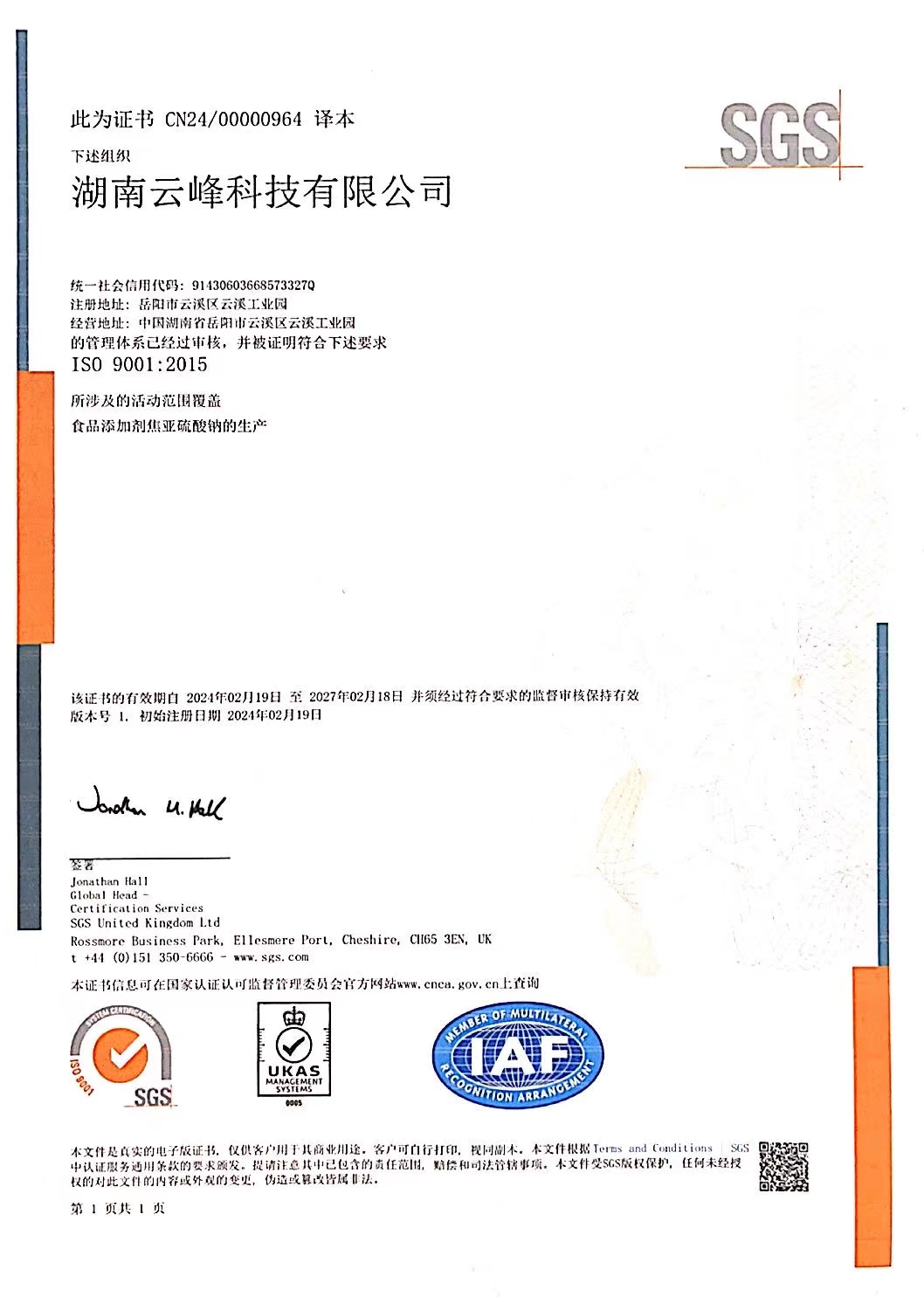 湖南云峰科技有限公司(以下簡稱云峰科技),是由長沙湘岳化工責(zé)任有限公司全額投資以生產(chǎn)焦亞硫酸鈉、亞硫酸鈉等亞硫酸鹽為主營業(yè)務(wù)的高科技企業(yè),具有六十多年的生產(chǎn)歷史,同時也是焦亞硫酸鈉的國家標(biāo)準(zhǔn)制定參與者。在行業(yè)內(nèi)具有很大的影響力。現(xiàn)有職工八十余人。具有優(yōu)良的經(jīng)營管理團(tuán)隊和成熟的生產(chǎn)技術(shù)隊伍。由多位在化學(xué)、化工行業(yè)擁有豐富工作經(jīng)驗的工程師及技術(shù)員團(tuán)隊組建而成,致力于亞硫酸鹽產(chǎn)品的研發(fā)、生產(chǎn)和銷售。2020年公司對生產(chǎn)設(shè)備、安環(huán)設(shè)施及工業(yè)技術(shù)等進(jìn)行了大規(guī)模的升級改造,使焦亞硫酸鈉和亞硫酸鈉的生產(chǎn)工藝更加先進(jìn),技術(shù)更成熟,產(chǎn)品質(zhì)量更優(yōu)良。無論在生產(chǎn)工藝、設(shè)備、產(chǎn)品質(zhì)量、清潔生產(chǎn)、節(jié)能環(huán)保和員工素質(zhì)方面,均處于行業(yè)領(lǐng)先地位。公司的主導(dǎo)產(chǎn)品“云峰”牌焦亞硫酸鈉,歷史悠久,深受國內(nèi)外客戶信賴,產(chǎn)品遠(yuǎn)銷東南亞、歐美、非洲、南美洲等20多個國家和地區(qū),產(chǎn)品供不應(yīng)求。